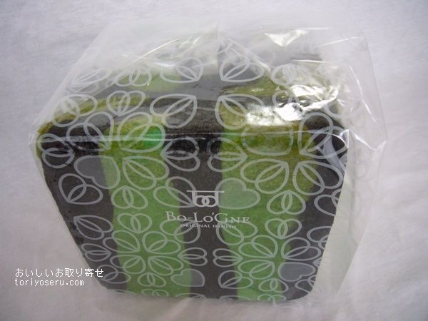 あざやかな緑色と黒のストライプ模様がきれい。甘ーいパンの香りがします。ふんわり柔らかというよりは、カチッとしっかりした生地。