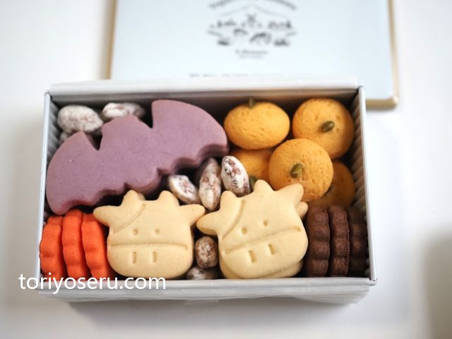 蓋を開けると、透明のケースに入ったドルチ2種入り。配送の時に揺れちゃうのか、ちょっと透明ケースは曇り気味。アーモンドとオレンジチョコレートの2種。