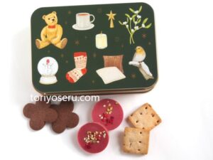 取り寄せたのはクリスマス時期限定の「small christmas cookie box」時期によって販売されているデザインは様々で、動物のアイシングクッキー(ねこちゃんやウサギ、犬、こびとのクッキーなど)やウェディングクッキー、バースデークッキー、赤ちゃん誕生のプレゼントにぴったりなクッキーなどいろんなシーンで送りものに使えそうな可愛いクッキーをたくさん販売されています。