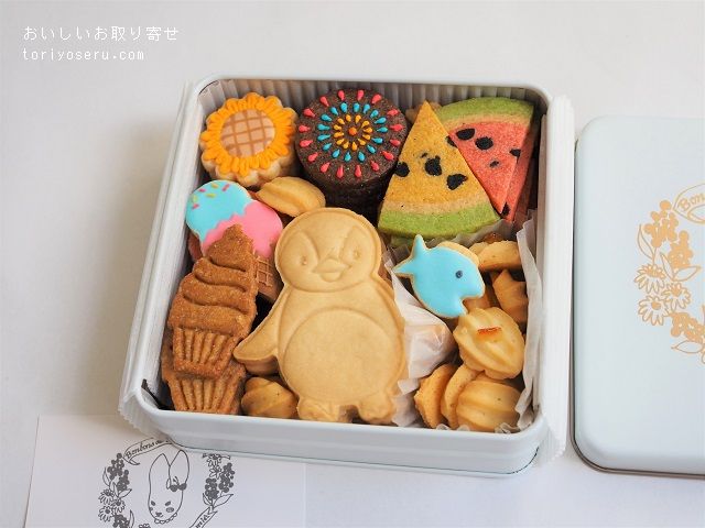 お菓子屋miaの夏のクッキー缶 「お菓子やmia」さんのアイシングクッキーです。取り寄せたのは可愛い10周年記念のクッキー缶。真っ白い缶にゴールドのロゴマークが可愛い...