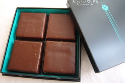 フェリシモの幸福のチョコレートでバレンタインに取り寄せたチョコレート。オーストラリアのメルボルンにある「ラベルミエット」のチョコレート。淡いブルーの上品な感じのボックス入り。中を開けてもきれいなチョコがきれいに並んで入ってます。箱を開けたときの黒字にゴールドの絵柄がゴージャス。真ん中にきれいに並ぶチョコが宝石みたいにきれいです