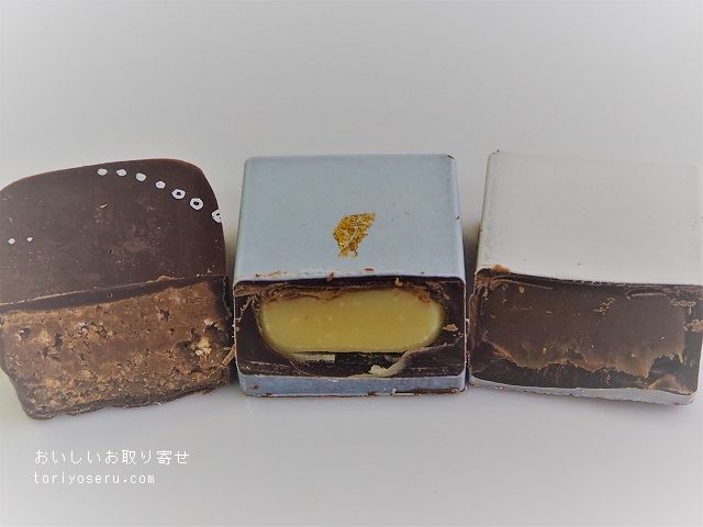 白いチョコにはキャラメルが入ってて、とろりと甘いです。