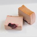 とろとろクリーミーなチーズケーキです。もっちりまったりクリーミー。すごく滑らか。クリームチーズと苺の酸味が程よくあり、フレッシュなゴロっと粒感の残った苺ジャムが入っていて苺も甘くて美味しい。