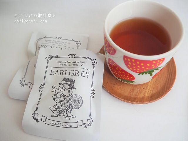 アールグレイ紅茶とチャイの2種類。写真のはアールグレイ紅茶です。おやつの友にぴったり。