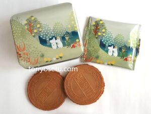 日の出屋製菓とムーミンのコラボ。 MOOMIN 抹茶チョコクリームゴーフレット缶