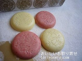 丸いお花のような模様がついています。昔の銀貨「テーラー」をイメージした箱なんだそう。箱の中のチョコも丸いチョコで、ピンクと白いチョコ。デメルには珍しいチョコレートだなぁという印象。