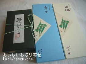 価格:箱入り5個1,313円、10個2625円など、竹かご入りもあり。