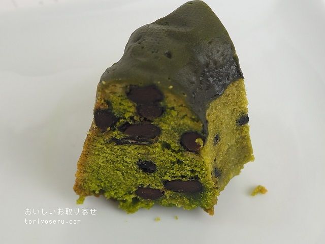 上からは濃厚なお抹茶チョコレートがコーティングされています。ここの部分がパリッとしてて、ほんのり苦みもあります。