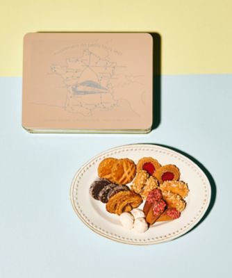 ラングドシャの中にプラリネクリームをつめた「コルネ」やメレンゲ、サブレなどを詰め合わせた〈ロタンティック〉の人気のクッキー詰合せ缶です。