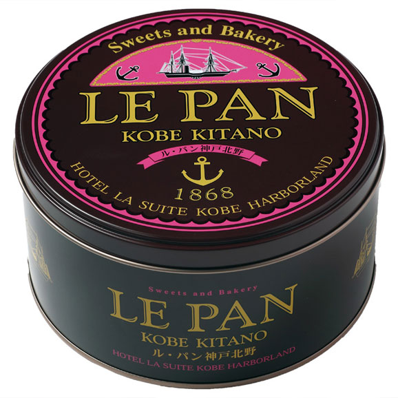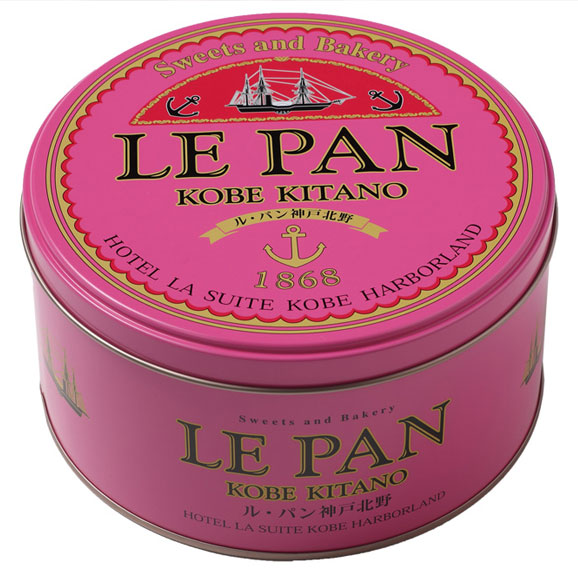 黄色い丸い缶は直径直径15.5cm×深さ8.4cm。神戸開港150年を記念して作られたル・パンオリジナル缶。この黄色のほか、ピンク、黒色もあります。