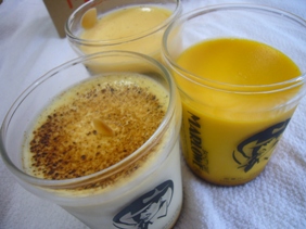 その独特な絵柄のビーカープリンとして有名な南葉山にあるカフェレストラン「マーロウ」より手作り焼きプリンをお取り寄せしました。この計量カップとしても使えるパイレックスの耐熱容器に入ったプリンは湘南みやげとしても大人気なんだそうです。