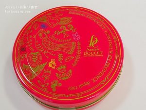 フランスプロバンスで人気のチョコレート店「フランソワ・デュッセ」のリンゴの箱に入った丸いカラフルなチョコレート。フランソワ・デュッセは1872年から代々続く菓子屋の家系に生まれ1962年にプロヴァンス地方の小さな町「オレゾン」でチョコレートつくりを始めました。赤いリンゴのパッケージはとっても可愛らしいです。中には赤、黄、緑の丸いチョコレート。3色の林檎の果実をイメージしています。フランスの南アルプス産の林檎のピューレをふんだんに使用したジューシーなりんごのパテ ド フリュイをミルクチョコレートとホワイトチョコレートで包んだもの。結構甘めで、中にゼリー状のリンゴのピューレが入っています。酸味もあります。
