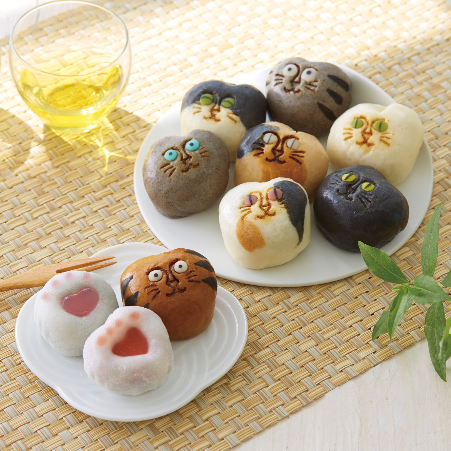 | 内容量 | 5個入り(10個入りあり) とら猫 (黒糖生地・小豆粒あん) 黒猫(竹炭生地・黒糖あん) 三毛猫(プレーン生地・抹茶あん) ロシアンブルー(黒ごま生地・小豆こしあん) 白猫(プレーン生地・クリームチーズあん) |