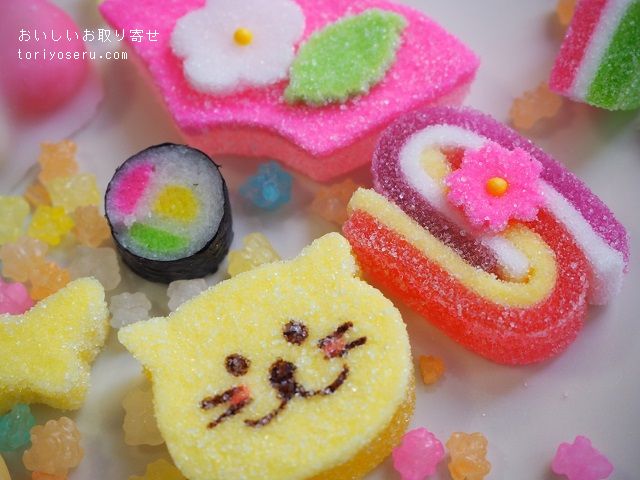 原材料 砂糖(国内製造)、小豆、米粉、つくね芋、水飴、きなこ、竹炭、トレハロース、着色料(カルミン酸、黄4、青1) (一部に山芋、大豆を含む)